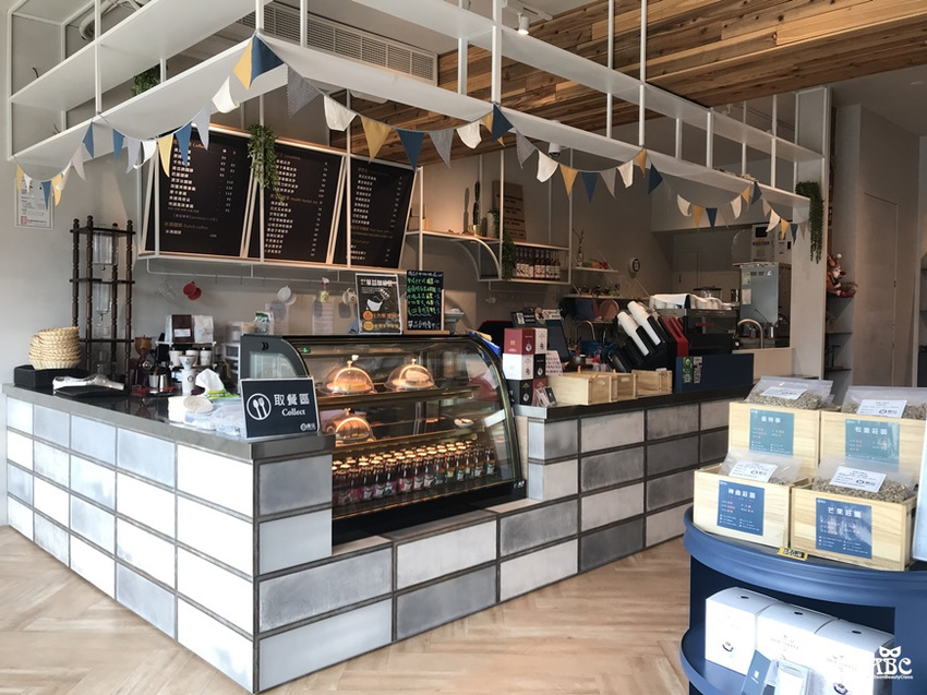點餐的吧檯掛上野餐風格的三角旗,活潑可愛。
