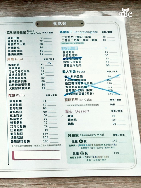 先別管牆了,我們來點餐囉!菜單如下,畫好單到櫃台結帳即可。