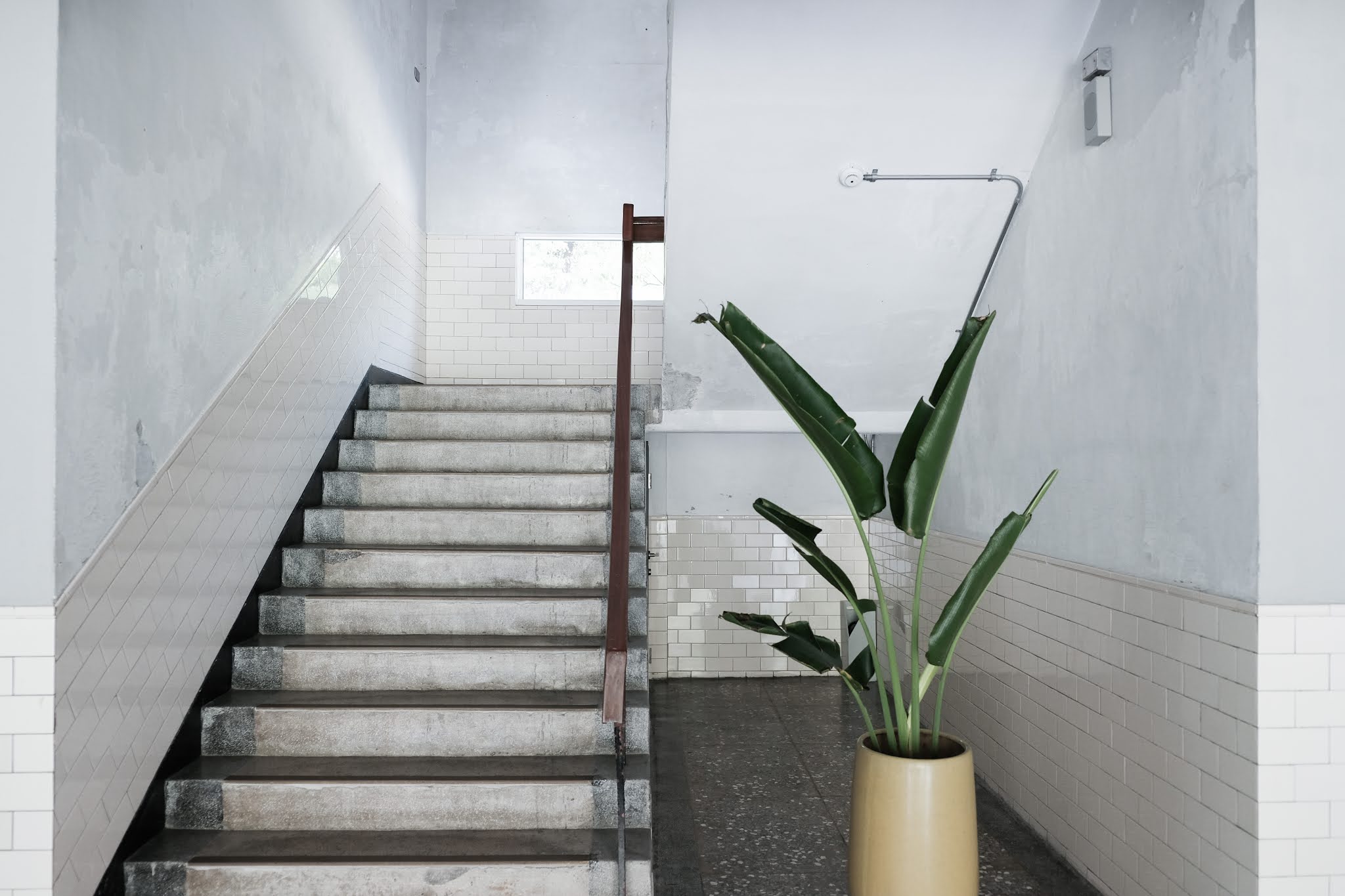 你看扶手的斜率跟牆面磁磚的斜率整個吻合,