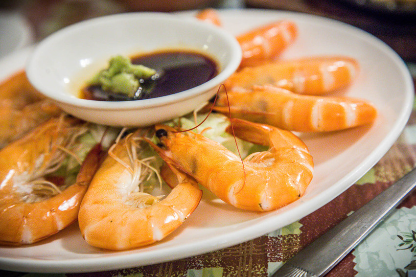 紅尾蝦口感嫩中帶Q,甜度十足,蝦頭裡也是滿滿的蝦膏,加上一點芥末醬油提鮮,這蝦還真好吃!