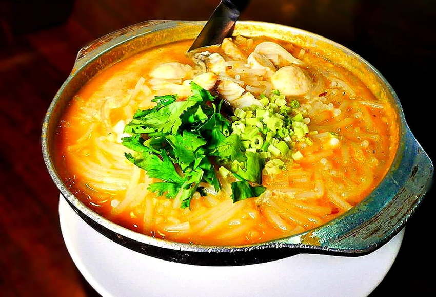 湯頭帶有鮮魚及蔬食甜味,配上新竹米粉,及綿密的芋頭/南瓜.讓人一碗接著一碗完全停不下來