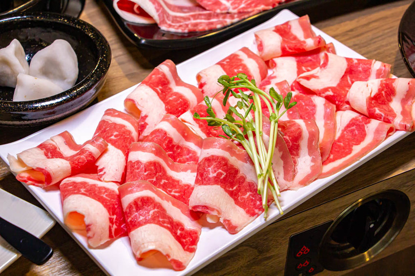 牛五花的油花較豐沛,口感上顯得較為Q彈,加上肉量滿滿吃起來很過癮,也讓人覺得這肉片,下回造訪時應該可以試試麻辣鍋湯底。