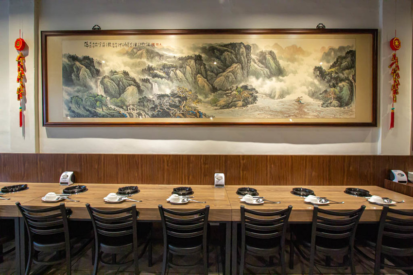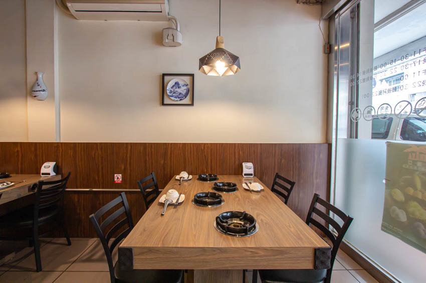 木質桌面與暖色系的燈光讓人覺得溫馨放鬆,有趣的是店內裝潢多為風水畫、書法與瓷,和一般常見的火鍋店略有不同。