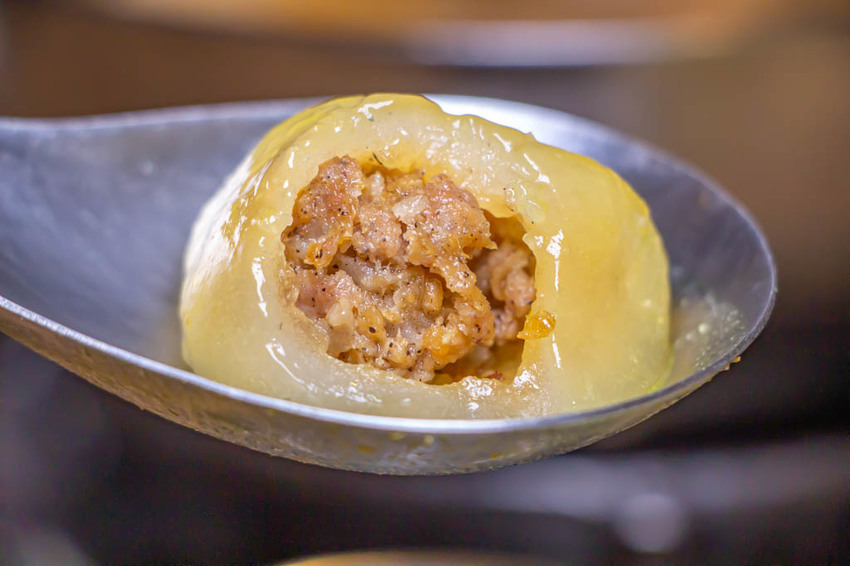 晶瑩剔透的水晶餃吃起來口感Q彈,裡頭的肉餡飽滿,個頭不小~吃起來很過癮。