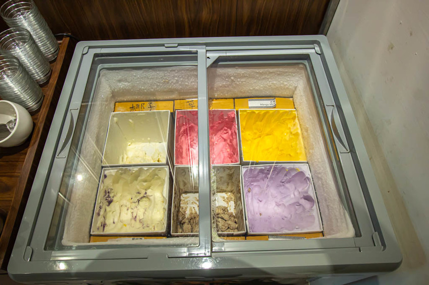 店內提供的是泰國-聖堤亞冰淇淋,一旁還有備註口味,後來跟闆娘閒聊時,得知店裡有時候還會有榴槤口味出沒,當下真的是讓我們莫名的期待,下回來會不會有。