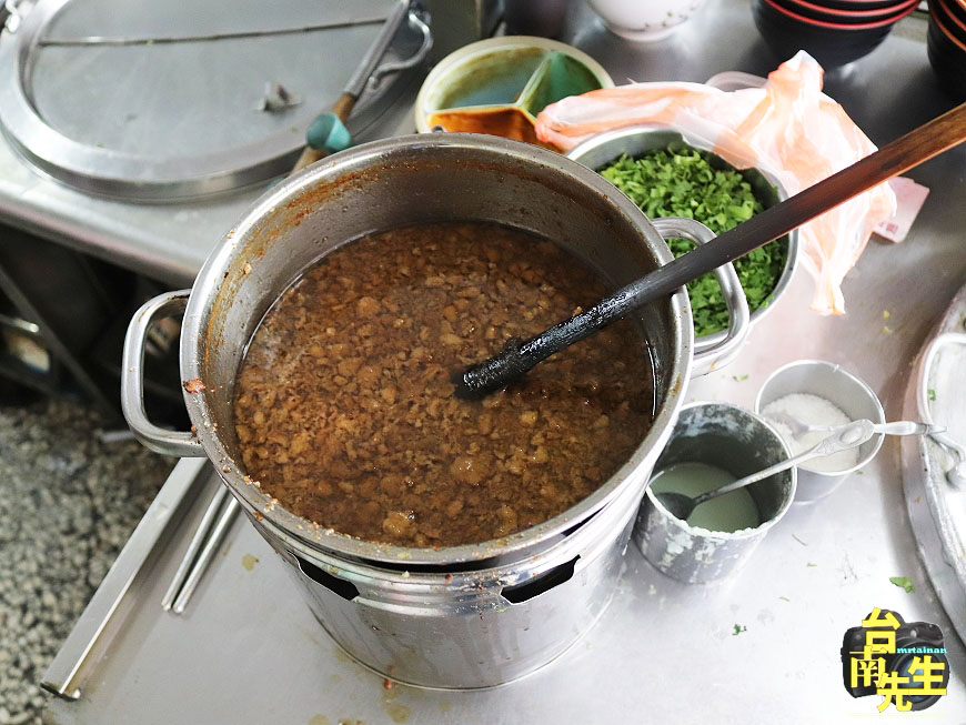他們家旗魚羹湯最大特色是有加一點肉燥,這一鍋是羹湯專用的肉燥,跟肉燥飯用的肉燥分開