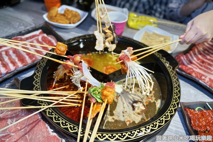 蜀國串香鴛鴦火鍋有鴛鴦鍋及賓士鍋,可以一次多種口味的湯頭,吃辣跟不吃辣的朋友都可以吃到串串的魅力唷,大家跟著小米去看看吧