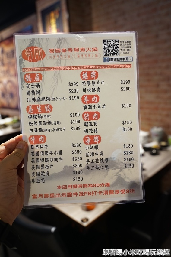 👉蜀國串香鴛鴦火鍋食材及菜單介紹