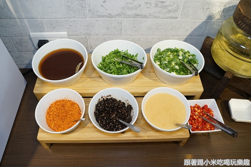 特色醬料自行取用。喜歡重口味的朋友,可以嚐看看黑豆豉。辣椒粉是四川味道,可以裝一碟,涮完肉直接沾著吃,並不會太辣,有點像七味粉香料的提味。