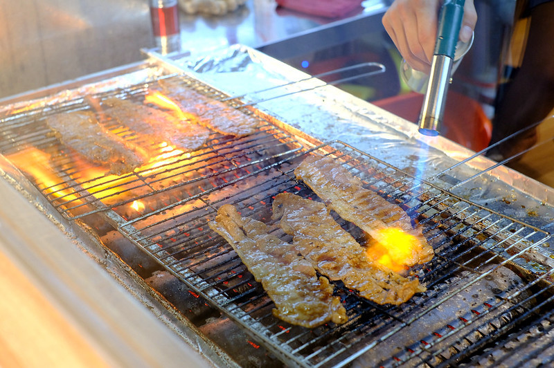 最喜歡店家半開放式的廚房了,因為可以看到廚師帥氣又認真的準備餐點,看這個烤過又炙燒的肉片,等一下少不了飽足一頓啦