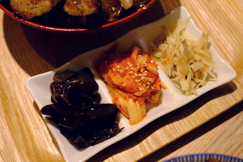 配菜:醋釀黑木耳、韓式泡菜、牛蒡絲
