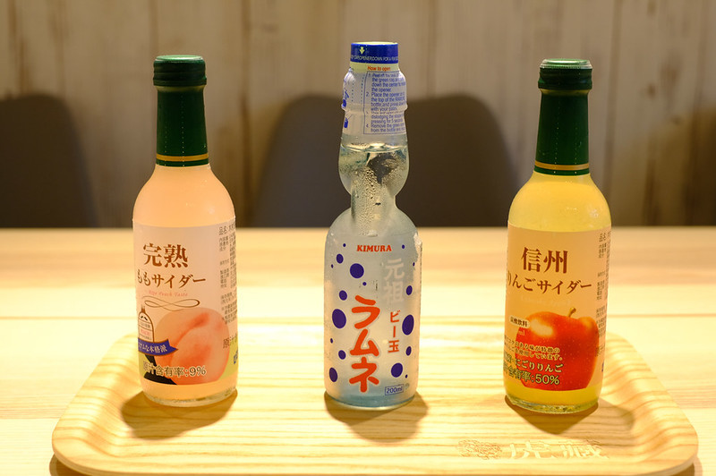 餐前、中、後都很適合拿來搭配的日本果汁飲料,酸酸甜甜的搭配丼飯還蠻解膩的啦,中間那個還是彈珠汽水耶:每瓶90元