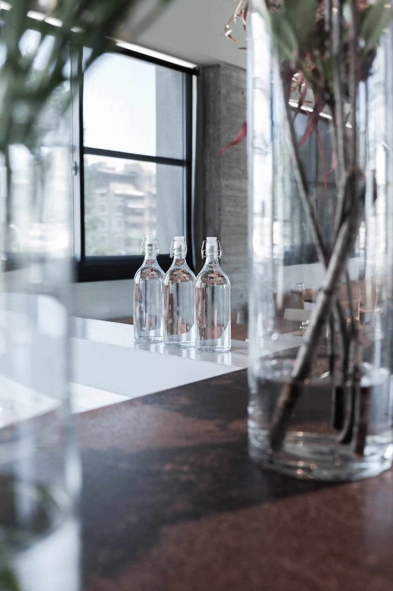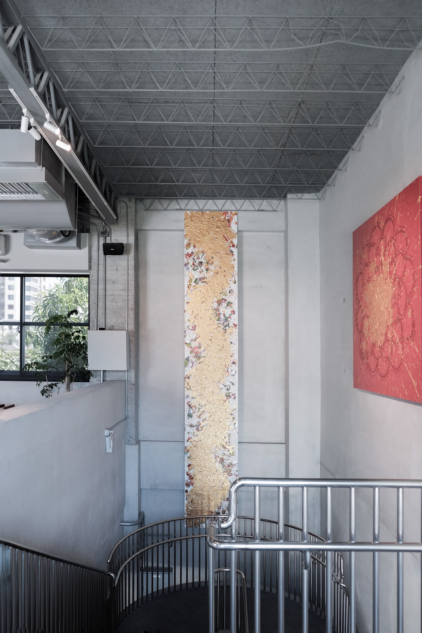 金屬原色的扶手則是與牆面的淺灰色相輝映,