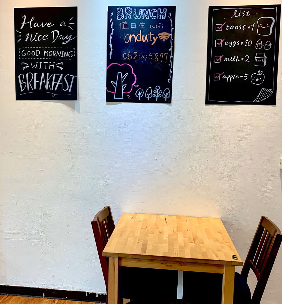值日生位於勝利國小對面的懷恩街,她是一間新開幕的早午餐店,小小的店面大概可以坐20人左右,店內地中海藍的靜謐沈穩色與純白牆面成對比,溫潤原木色系的傢俱讓整間店充滿鄉村風格。