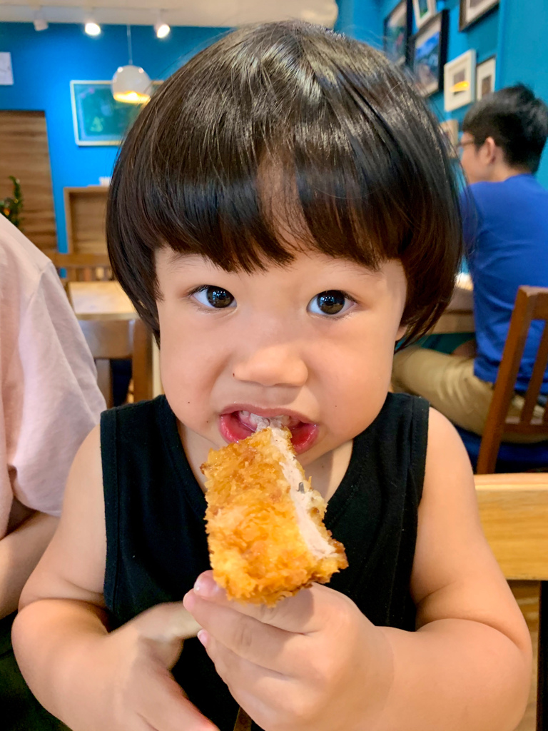 這是日式炸豬排吧!也太好吃了!!😋酥脆的外皮包裹著厚切的豬肉,咬起來口感層次分明,厚切不死柴的口感連兩歲女鵝也搶著吃。