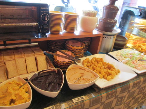 坐我們旁邊那對老夫妻,先跑去拿水果,結果蹲在那夾水果時居然對著那些食物咳嗽orz,那盤甜點是媽媽剛來時就拿,眼不見為淨吧!