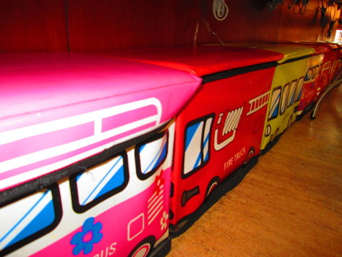 用餐桌的下放還放了像火車的置物椅,可以放東西,要走時別忘了將物品帶走喔