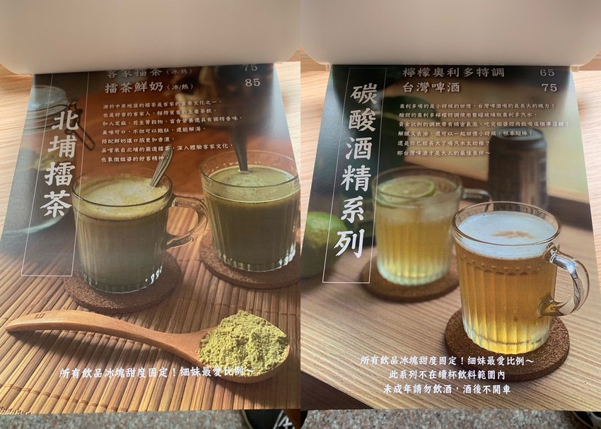 飯後點心「客家花生麻糬」對我來說沒有這麼客家味,因為阿公阿婆到現在80幾歲還有幫一些活動、宴客做客家麻糬,吃起來口感是有Q勁的但卻不好下嚥,再來最在意的花生粉是選用有顆粒感的,混合的糖粉也偏粗,兩者吃起來是沒有合而為一的感覺,所以整體蠻失望的,不過口味還是很個人啦!