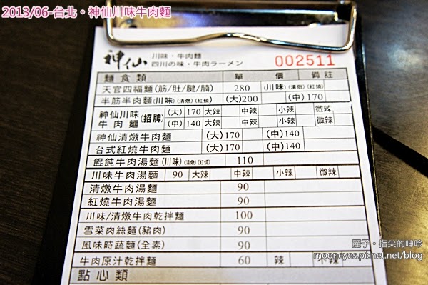 第一次來這邊當然要從招牌開始,所以我點了「神仙川味牛肉麵」-小辣口味(小)。