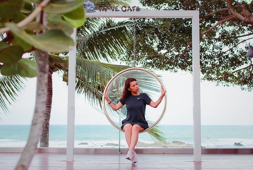 逐浪海景咖啡也設置幾個拍照專區給來店的朋友們在這拍美照,最夯的當然就玻璃鞦韆,在這拍照真的隨便拍隨便都好看。