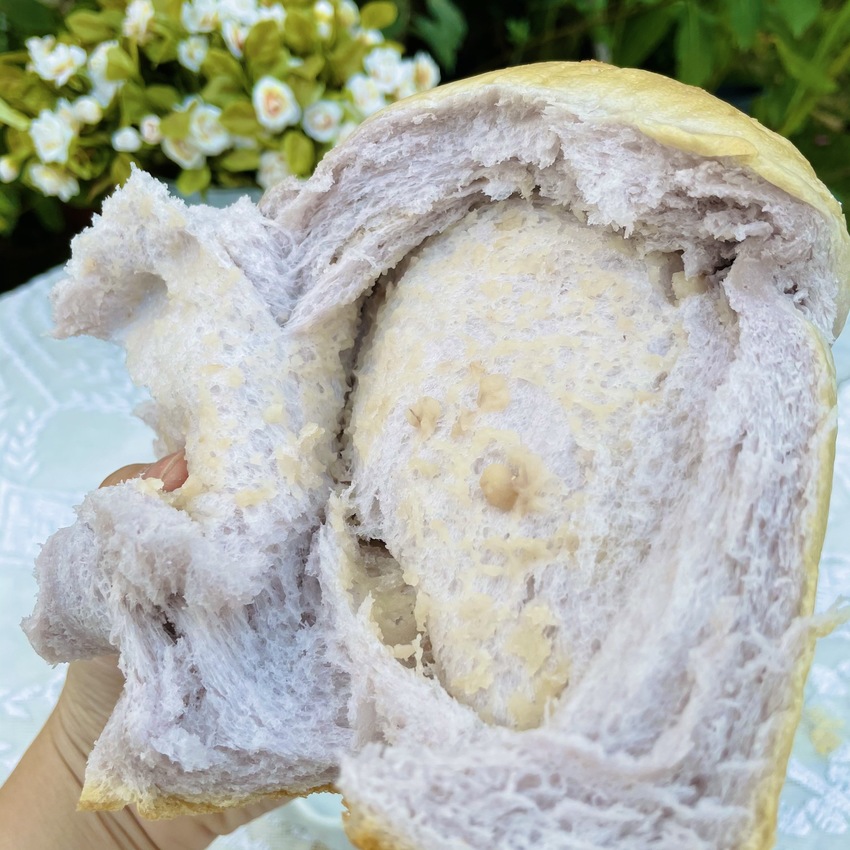 咬下軟中帶勁的手撕吐司,更能驚喜地嚐到芋頭顆粒,鬆軟療癒的口感令人難忘!