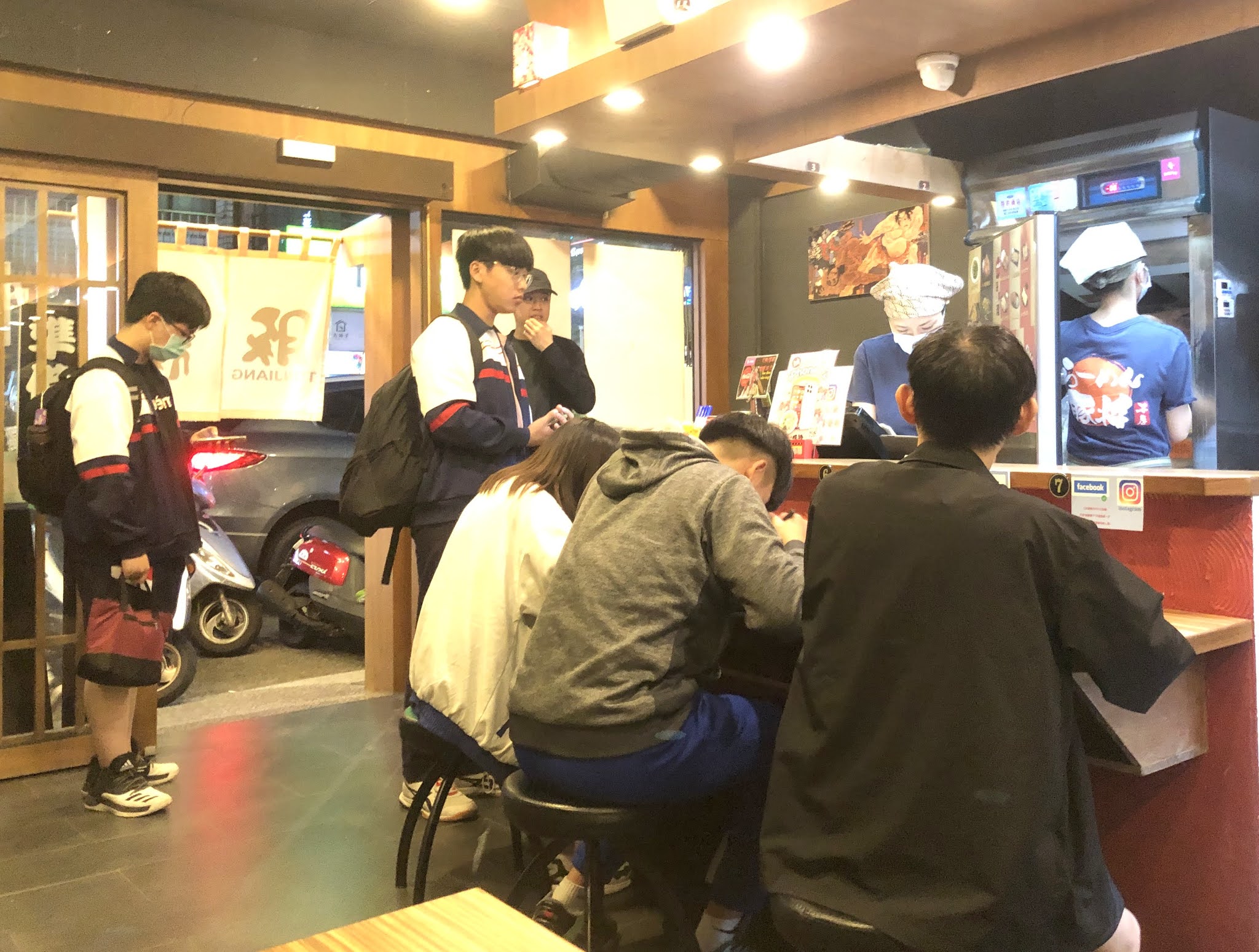 店面,探頭一瞧裡面已經滿座,門兩旁還有不少
