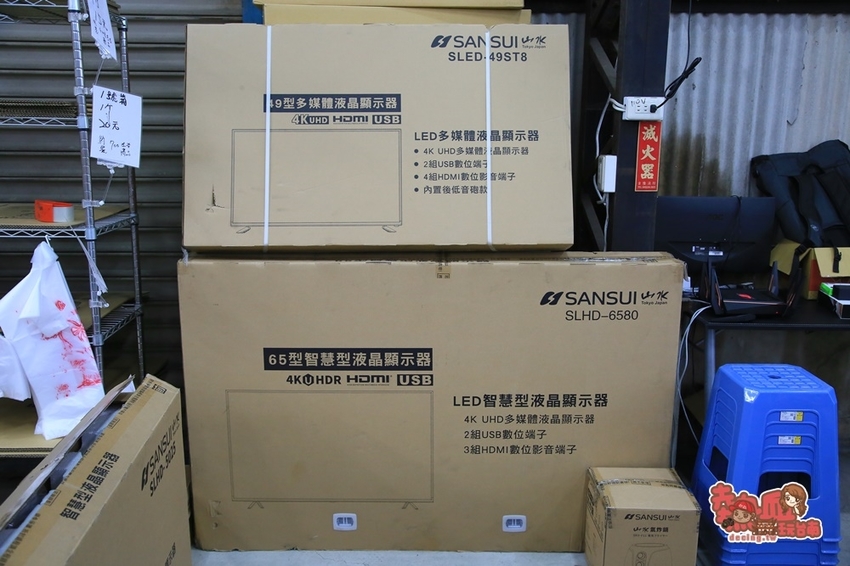 倉庫門口外側貼了一張疲老闆大型看板,可將車子停靠在門口,走進去就會看到倉庫了。