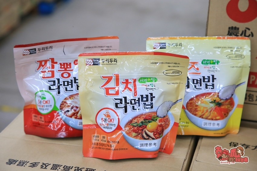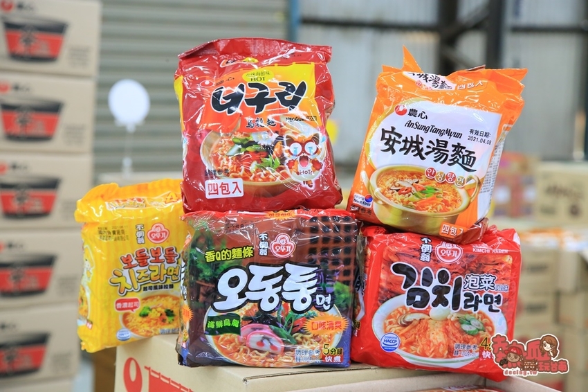 還有各式各樣的韓國拉麵,除了人氣辛拉麵之外,其他韓式泡麵款從不倒翁香Q麵條、安城湯麵、香濃起司、泡菜口味等,全部均一價99元