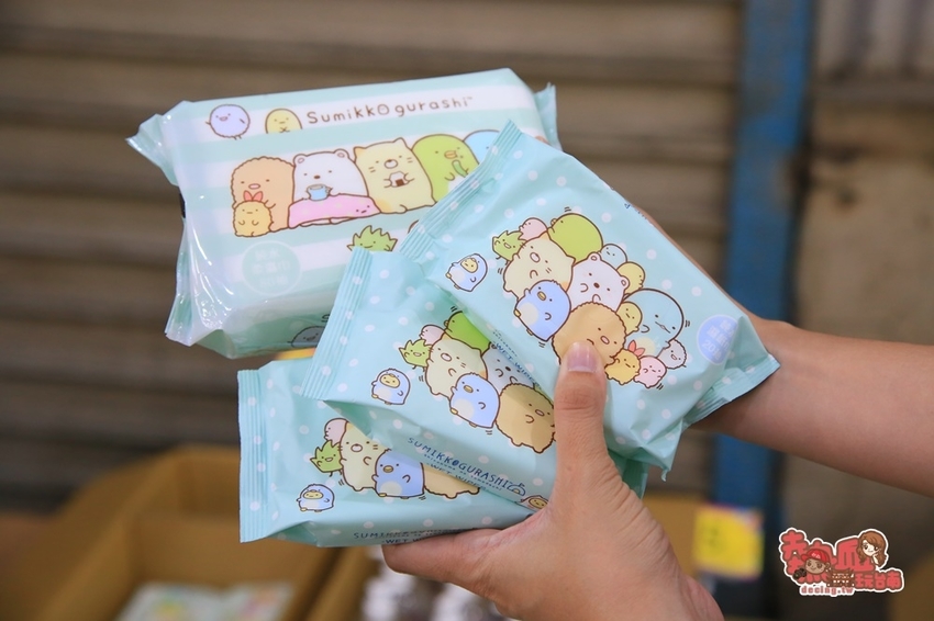 超高人氣的角落生物濕紙巾這裡也有賣哦~小包狀一包19元,好攜帶~大包49元,人均挑選,但這區數量有限賣完就沒囉~