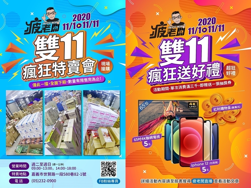 今年(2020)11/1-11/11限期11天,消費滿3000元,就有機會拿到IPhone 12、65吋4K 聯網電視喔!