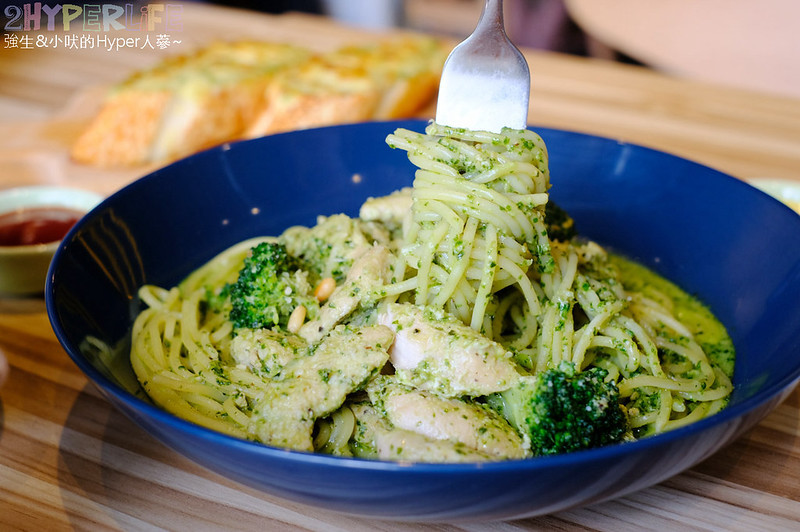 主角義大利麵的青醬調得真的很美賣,醬料不會太多麵條也不會太少,雞肉不柴,是平凡但卻又不容易呈現到好吃的一道料理。但我們有喜歡亞丁尼的做法