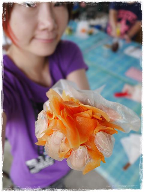 班長說回家以後可以把青木瓜放在冰箱裡面保存 這樣還會讓它的風味更佳
