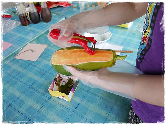 馬上就開始示範削木瓜皮了