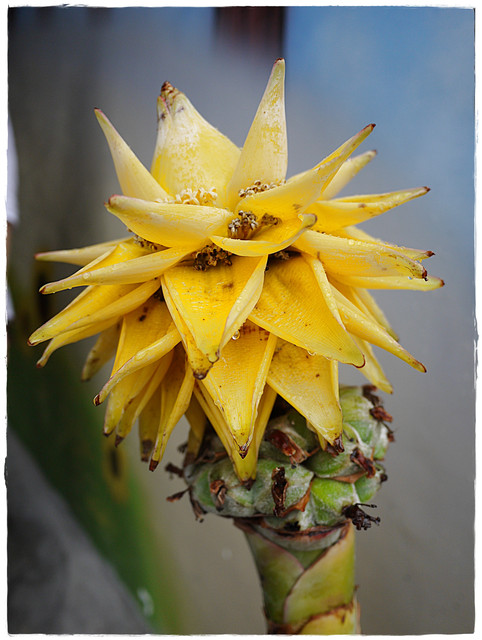 藏在黃色花瓣底下綠綠的就是香蕉的果實