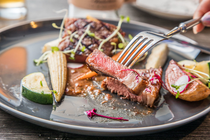 裡面保持五分熟且一點都沒有血水流出,紐約客肉嫩但又帶有咬勁,表層的肉質焦香味散發出濃郁肉香氣,內部呈現粉嫩色澤,生不帶血入口滿滿的肉汁感!油香口感相當飽滿厚實