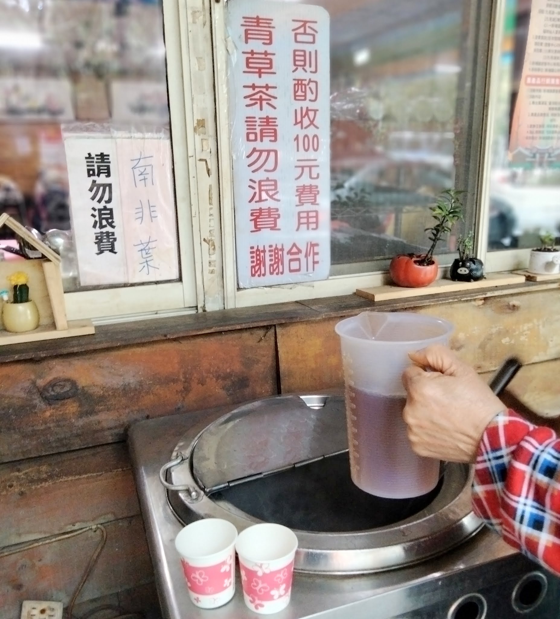 門前就有一大桶溫熱的青草茶,給用餐的顧客
