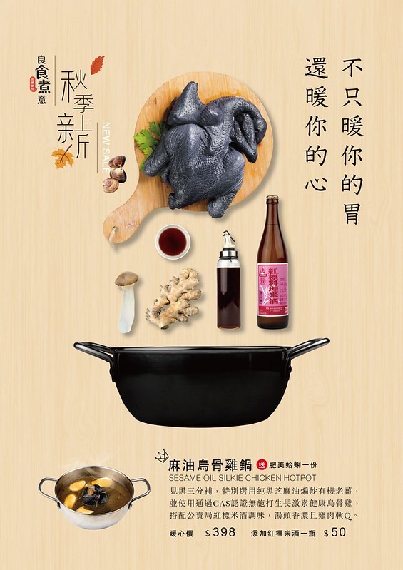 很快的時序就快立冬了,該趁這機會補一波啦!說到冬令進補的話最常吃的就是麻油雞或薑母鴨這類鍋物,最近主打有機鍋物專賣的▸良食煮意◂也推出秋冬限定鍋品〝麻油烏骨雞鍋〞!找了一天先嚐鮮看看