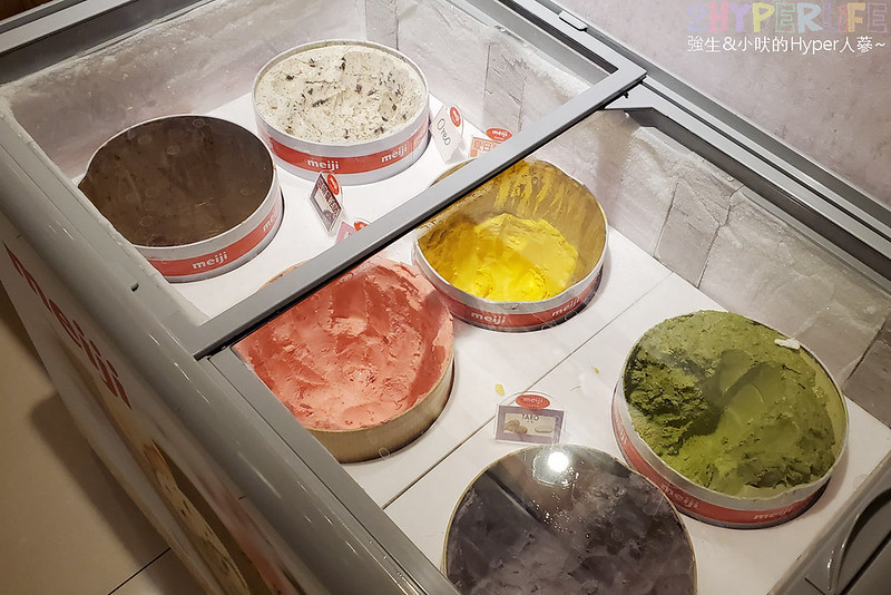 冰淇淋是明治的,也是我們很愛吃的冰淇淋牌子之一,枱面上有六種口味不定時做更換。