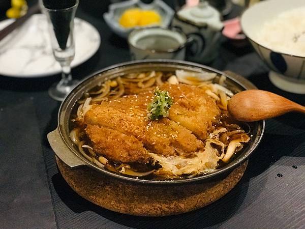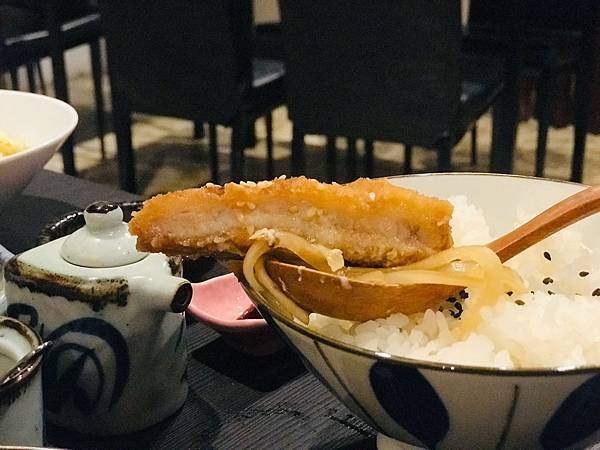 豬排跟雞蛋醬汁煮在一起很入味