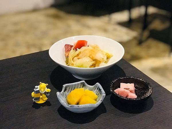 前菜有兩種小菜跟沙拉(2種醬料擇1)