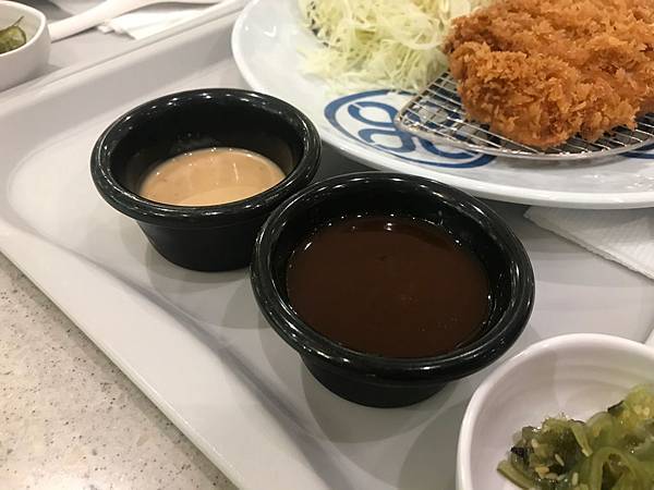 醬料有兩種左邊是偏甜的胡麻醬加在生菜上