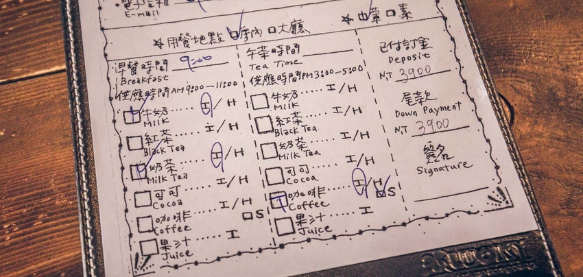 入住後灣36餐飲包含早餐跟下午茶,因為沒有餐廳,所以早餐跟下午茶都是由工作人員送到房間裡,真的貼心浪漫呢!