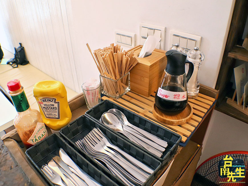 餐具、調味料自取,因為店內飲料大多是微糖或無糖,老闆特別煮一壺糖水讓客人自由添加