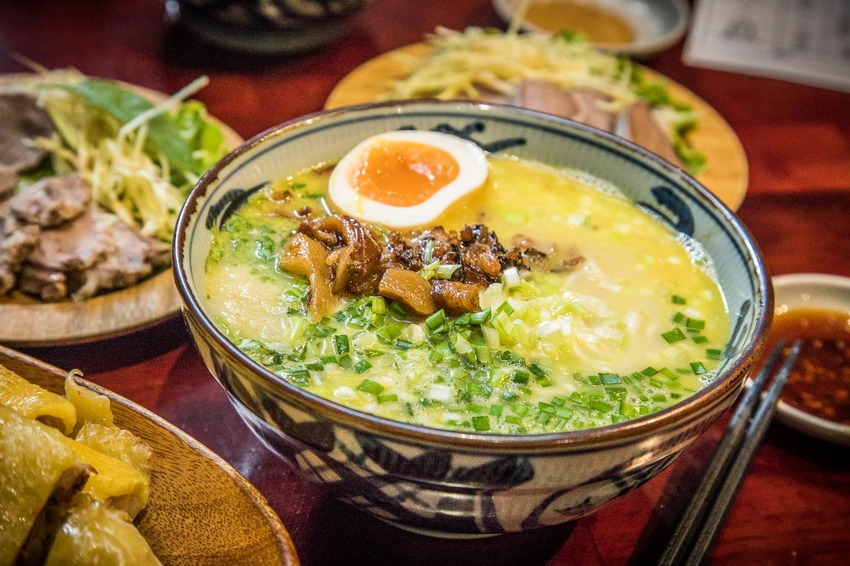 湯頭是老闆大量蔬果與雞骨豚骨下去長時間熬煮而成,可說是老闆的自信之作,湯頭本身味道就相當醇厚,喝起來甘甜味十足但口感清爽,一點也不油膩,而且還帶有濃郁的雞湯香氣,再加上畫龍點睛的大量韭菜末,層次感十足,光是喝湯就值得了!
