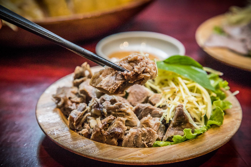 嘴邊肉是咬咬的最愛,而且辛梅的嘴邊肉中間還有帶膠質,且以舒肥法烹調,肉質相當軟嫩,膠質甜味在口中釋放,沾一點辣醬入口,舒服!