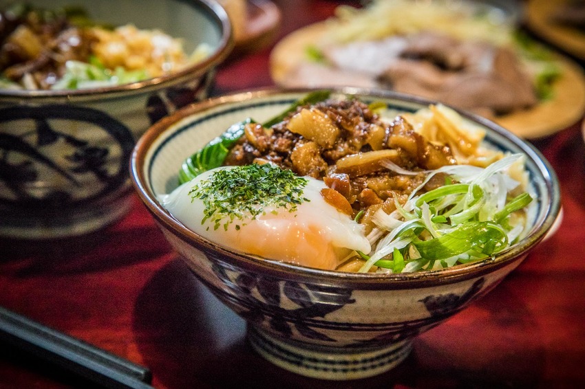 古早味乾麵加上日式溫泉蛋!?台日混搭迸出新滋味!不得不說辛梅的肉燥真的爆幹強!肥瘦相間,鹹中帶甜,光跟熱呼呼的麵條拌在一起就夠銷魂的,更何況還加上溫潤濃稠的溫泉蛋,一整個就是1+1大於2的加乘效果