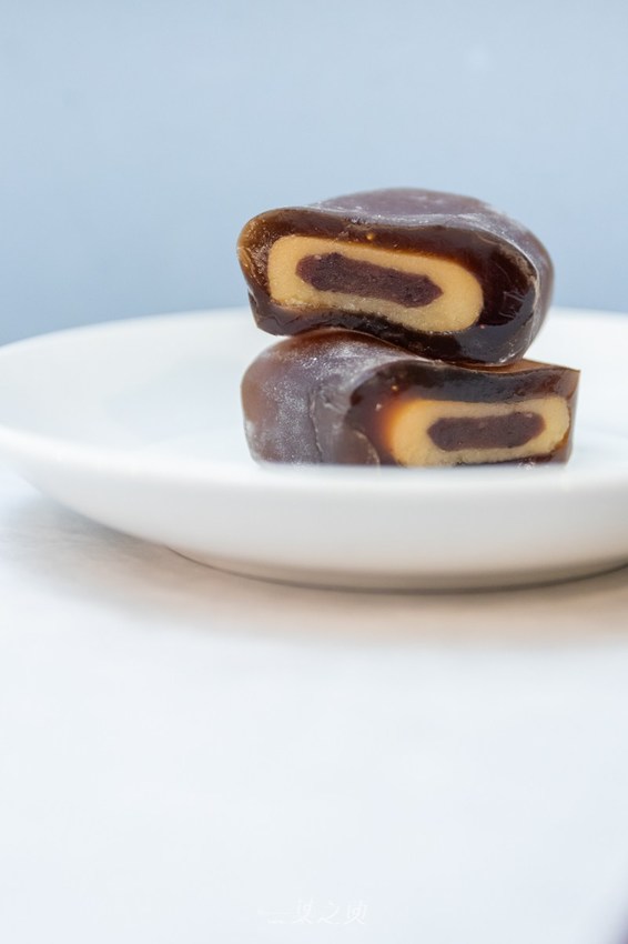 祥和蔬食料理所提供的甜點選項僅一種,不過這顆黑糖麻糬口感風味實在特別,被當作是甜點的壓箱寶也一點不為過,裡頭內餡包裹著紅豆沙和綠豆沙,外層的黑糖麻糬部分其實更像是涼圓,冰冰涼涼的口感,以及三個層次不同的甜味,做為餐食的結尾十分完美。