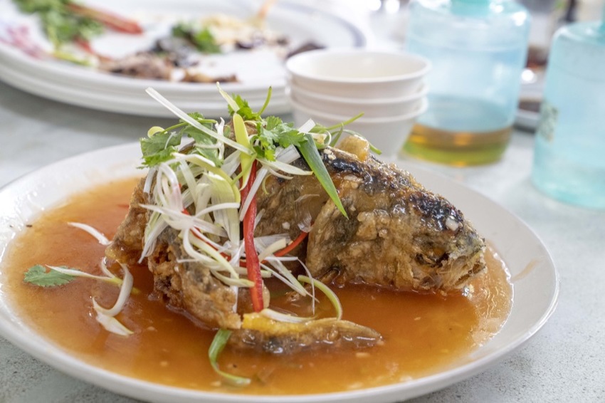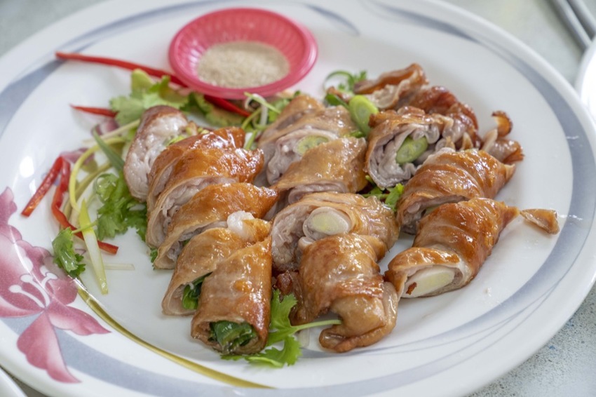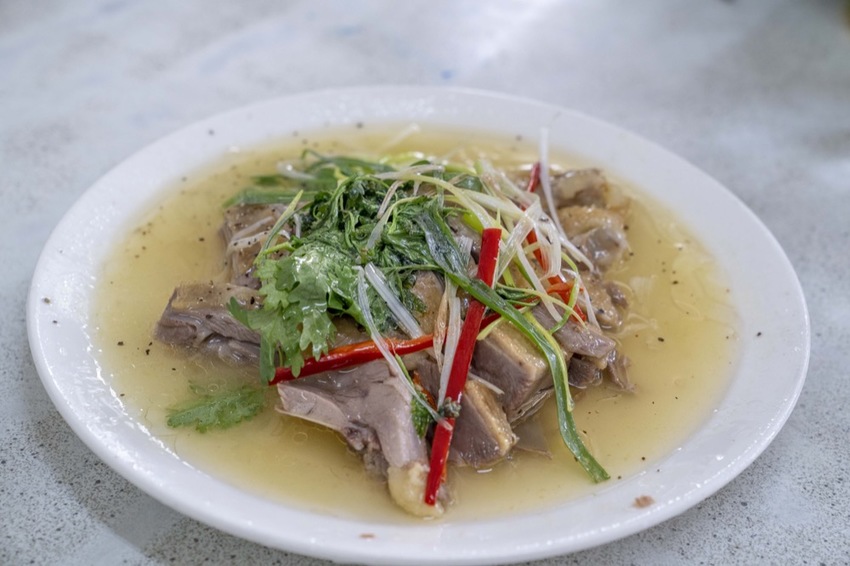 這道蔥油雞也是查資料的時候,很多人都推薦的餐點,在白斬雞擺滿蔥絲、香菜、辣椒,接著淋上熱騰騰的熱油,香氣瞬間激發,白斬雞沾裹充滿香氣的油湯更加鮮美,雞肉肉質軟嫩好入口非常美味!