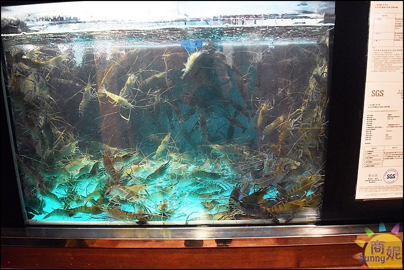 這裡的活蝦通通都有經過SGS合格檢驗,檢驗證書就在牆面,消費者吃得更安心。