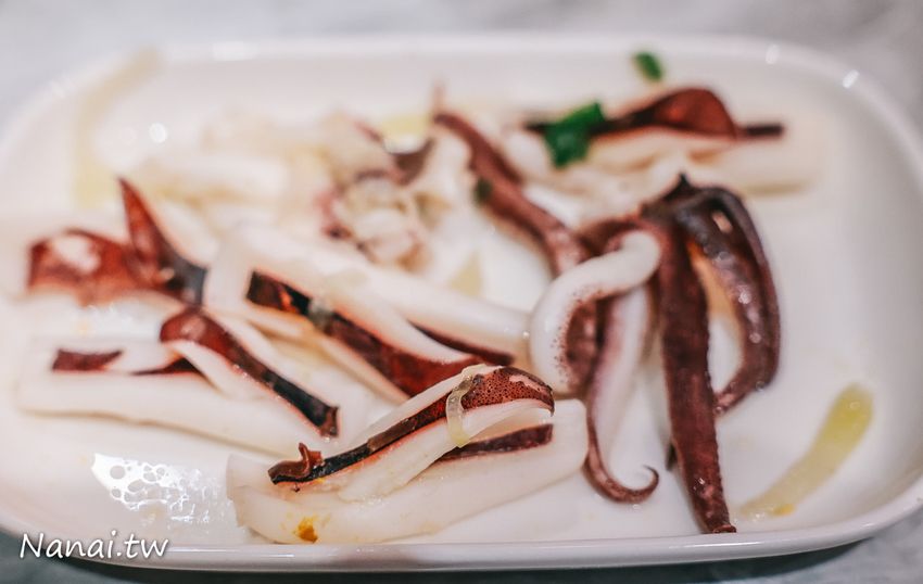 船釣軟絲吃起來口感鮮脆,易咬斷,不會難咀嚼,若是再來點醬料區的芥籽醬,風味更佳!